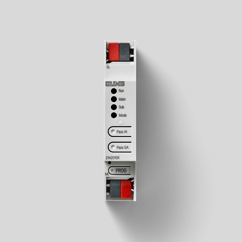 JUNG stellt den Bereichs-/Linienkoppler vor, der als zentrales Element für KNX konzipiert ist und mit 1 TE besonders wenig Platz im Verteilerschrank benötigt. Das Systemgerät bietet Flexibilität und Kontrolle bei der Verwaltung von KNX Linien im KNX Smart Building. Als Bereichskoppler dient das Produkt zur Verbindung einer Hauptlinie mit einer Bereichslinie, wahlweise mit oder ohne Filterfunktion. Darüber hinaus kann der Bereichs- und Linienkoppler als Verstärker fungieren und ermöglicht die Aufbereitung und Wiederholung von Telegrammen auf einer Linie ohne Filterfunktion. Mit der ETS6 ist nun auch die Verbindung von Segmenten möglich. Im Unterschied zum Linienverstärker kann der Segmentkoppler Filtertabellen bereitstellen. Er unterstützt die Aufteilung einer Linie in bis zu vier unabhängige Liniensegmente, wobei pro Linie maximal drei parallel geschaltete Linienverstärker eingesetzt werden können, mit insgesamt maximal 255 Teilnehmern. Als Linienkoppler dient das Produkt zur Verbindung einer Linie mit einer Hauptlinie, wobei diese Funktion wahlweise mit oder ohne Filtertabelle genutzt werden kann. Logisch wird der Koppler der untergeordneten Linie zugeordnet.